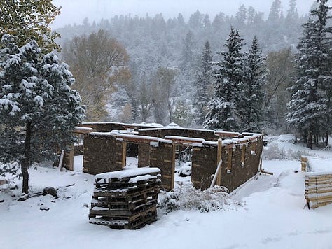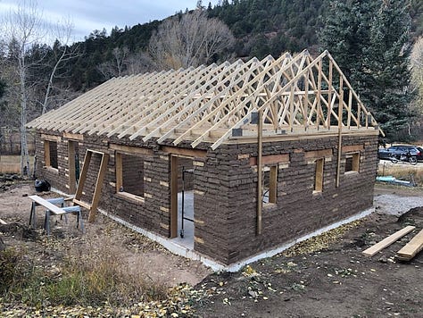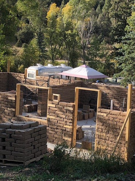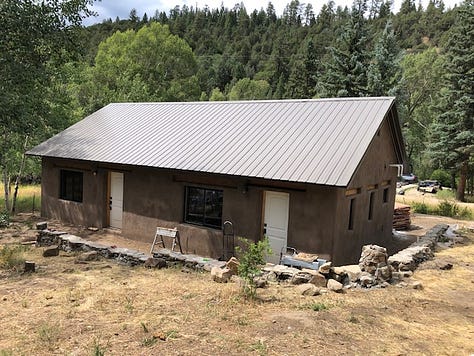 Steve sent us some pictures of his recently completed adobe home in the Taos, NM area. He completed our online Certificate in Adobe Construction in 2020 and received one year of Owner Builder Support from us in 2021. We sort of lost touch with him after that so we were thrilled to hear that his house is now done: