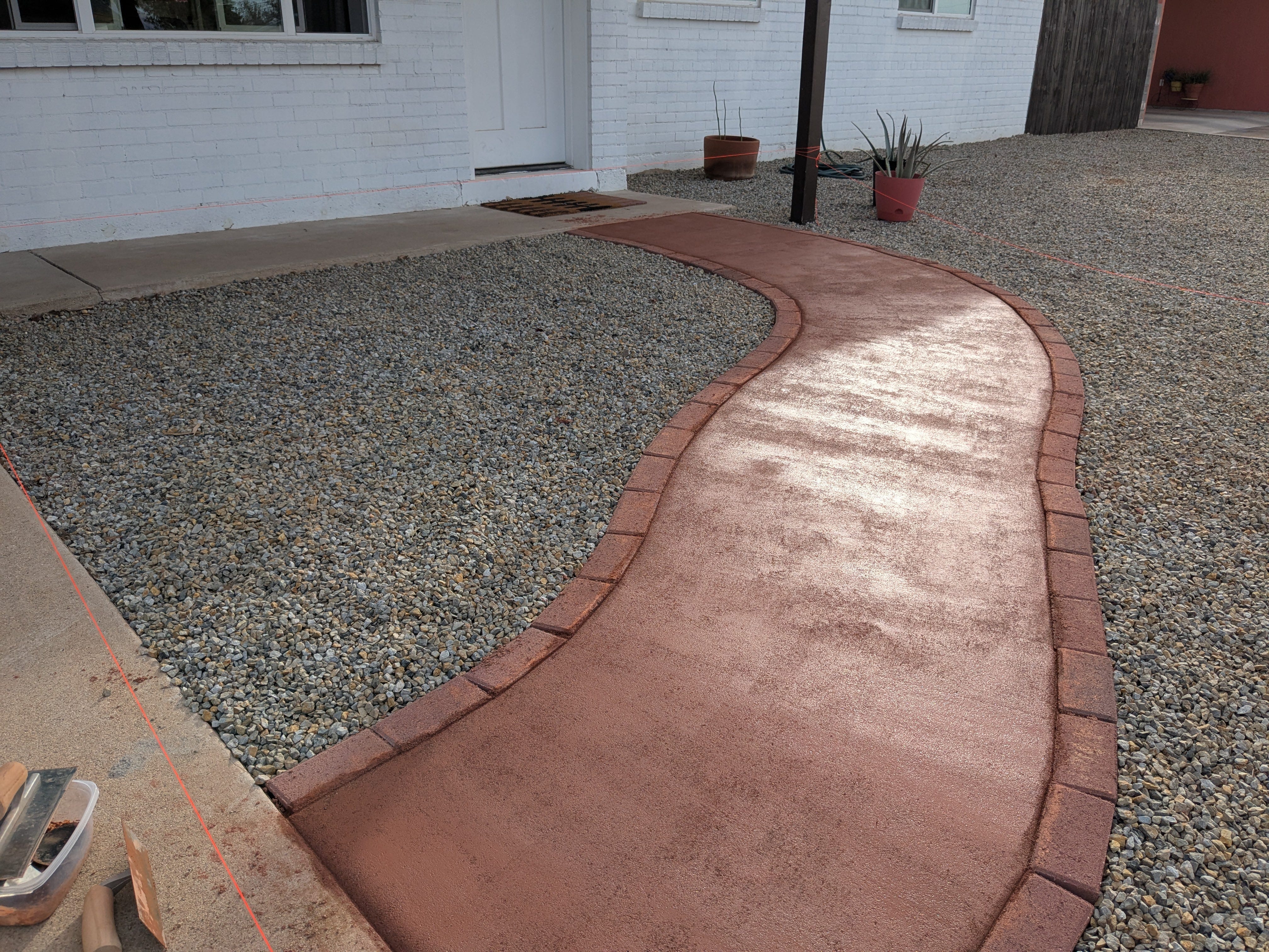 It will be interesting to see how the walkway holds up to direct weathering but what a great way to get some floor design, leveling and troweling practice in!